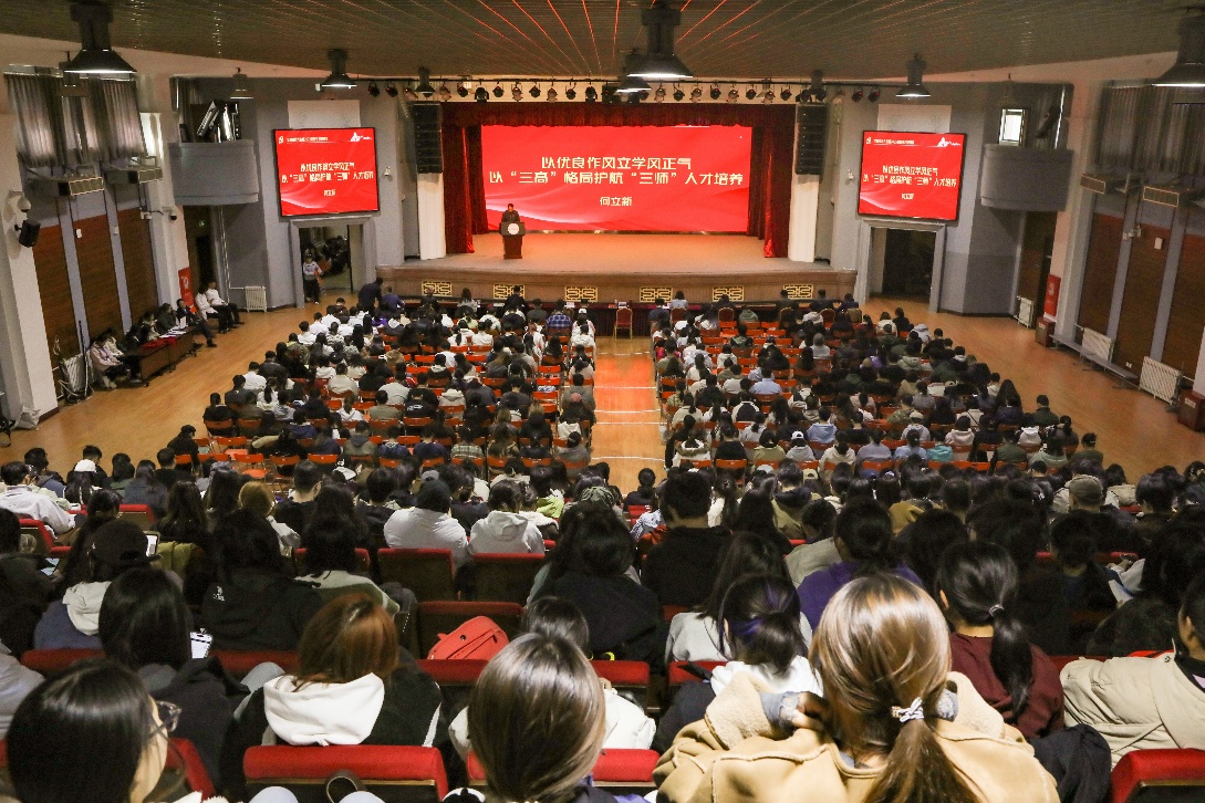 三要以“三高”格局引领师生发展,确保育人成效。学院党委要持续以高品质学院文化涵养学风,通过优化空间环境、打造仪式教育活动、营造关怀氛围,潜移默化地滋养学术追求。要以高水平师生互动激励学风,通过以赛促学、思政引领,在挑战前沿和价值塑造中激发创新活力。要以高质量师生发展引领学风,促进教师善教、学生好学,形成师生双向奔赴、共同成长的良好局面,培养更多具有家国情怀、扎实学识、担当民族复兴大任的卓越“三师”人才。