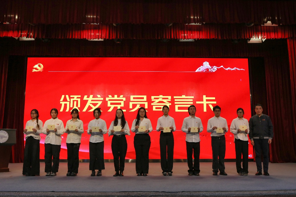 会上,学院党委书记何立新依次为新接收的预备党员颁发党员寄言卡。