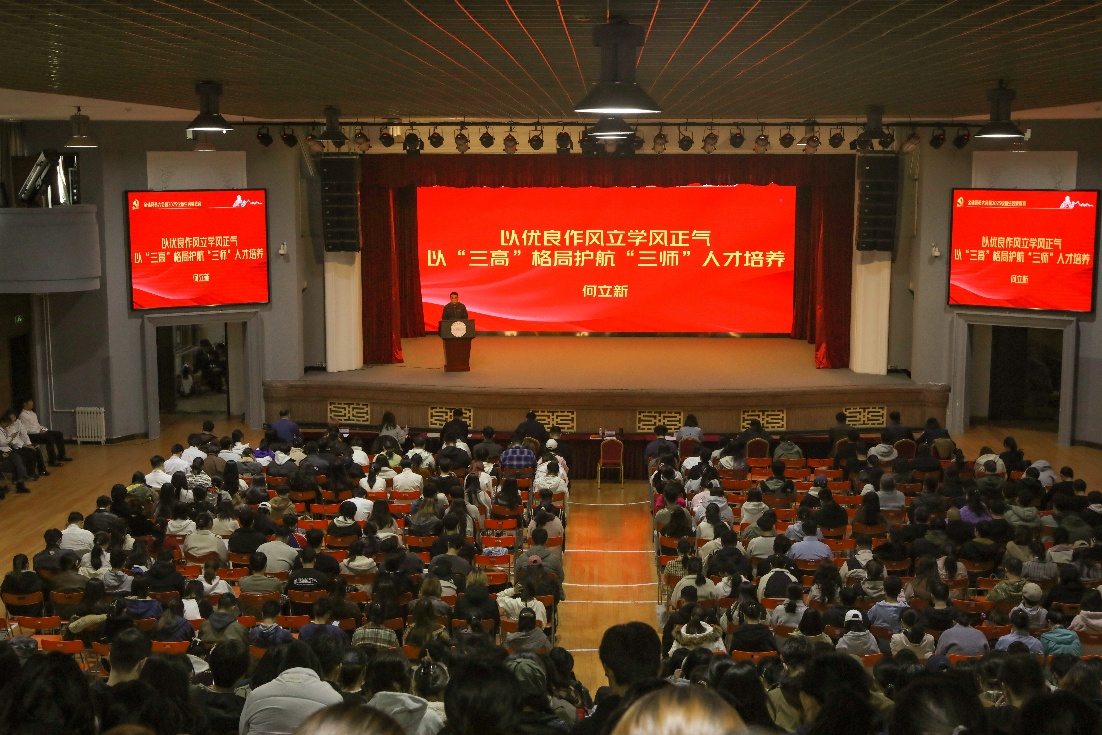 学院党委书记何立新围绕《以优良作风立学风正气 以“三高”格局护航“三师”人才培养》主题,为全体师生党员和2025级新生讲授专题党课,并作入党启蒙教育。