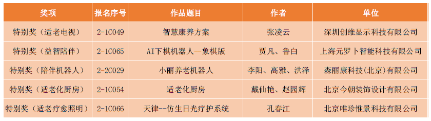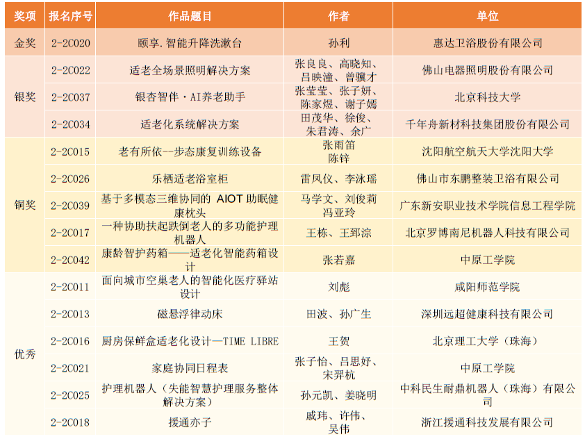 (注:根据大赛组委会及评审专家评估和决定,分为适老产品-量产组和适老产品-设计组。其中,适老产品-量产组划分为适老产品-家居组、适老产品-科技组和适老产品-创新组。)